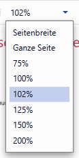 | Zoomstufen Der letzte festgelegte Stand wird im Falle von Maskenreports benutzerspezifisch gespeichert, wobei die gespeicherte Web Client-Konfiguration im Falle von Desktop-PCs sich auf den Windows Client auswirkt (und umgekehrt). Im Falle von Touch-Geräten werden Änderungen der Zoomstufe weiterhin nicht gespeichert. Das Laden eines Masken-/Desktop-Reports erfolgt auf Tablets weiterhin mit der Stufe Seitenbreite. Die Darstellung der Zoomstufen betrifft: