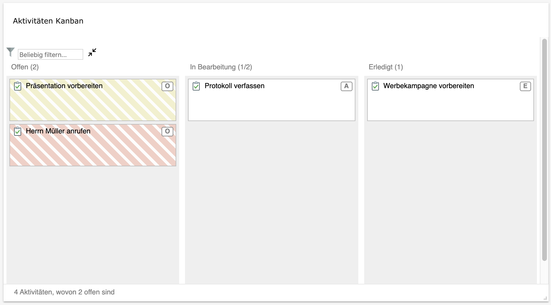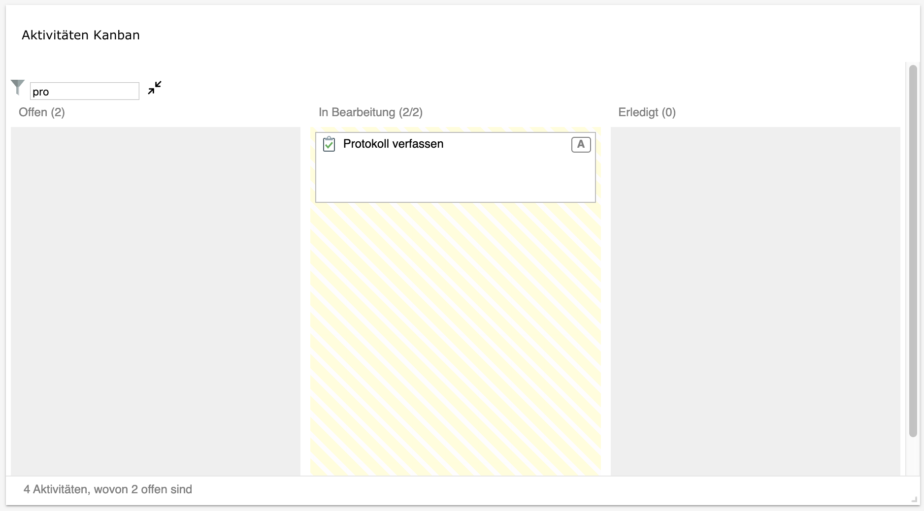 Infokachel - Aktivitäten Kanban