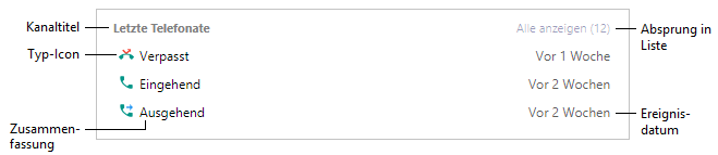 Die Kachel zeigt schnell erfassbare Informationen zum Anrufer in einer Listenansicht an. Jeder Listeneintrag besteht dabei aus