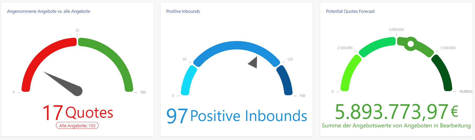 Dabei ist es möglich, zwischen einer rein textuellen und einer Tacho-Darstellung zu wechseln und dahinter liegende Suchen mit einem Klick auf die Kachel direkt in einem neuen Tab zu öffnen.