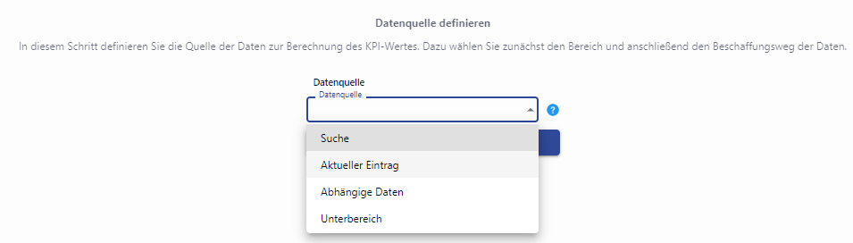 Nach dem Hinterlegen einer Datenquelle kann eine neue KPI-Konfiguration hinterlegt werden. Pro Datenquelle sind auch mehrere KPI-Konfigurationen erlaubt.
