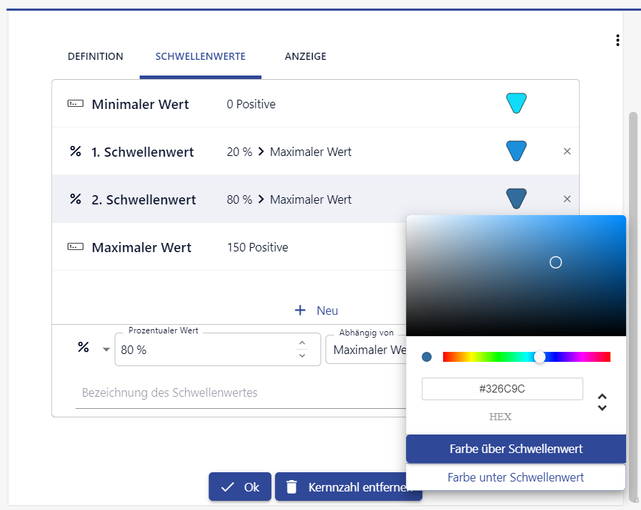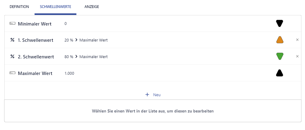Weitere Schwellenwerte können über den unteren Bereich hinzugefügt werden.