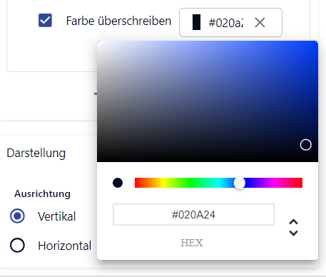 Je nach Definition lässt sich hiermit die Farbe unter- oder oberhalb des Schwellenwertes verändern. Auch ist eine Eingabe über Farbcodes anstelle eines Mausklicks im Farbspektrum möglich.