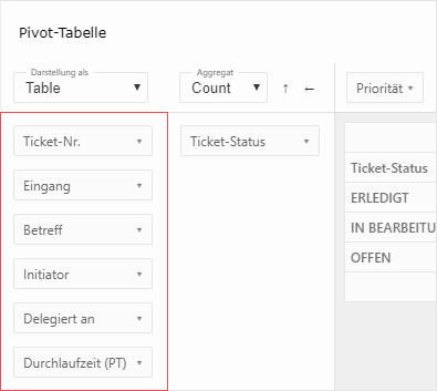 Zeilen | Die (technischen) Namen der Felder als Vorbelegung für die Zeilenauswahl. Die Reihenfolge der Zeilen ist für die Darstellung relevant. |