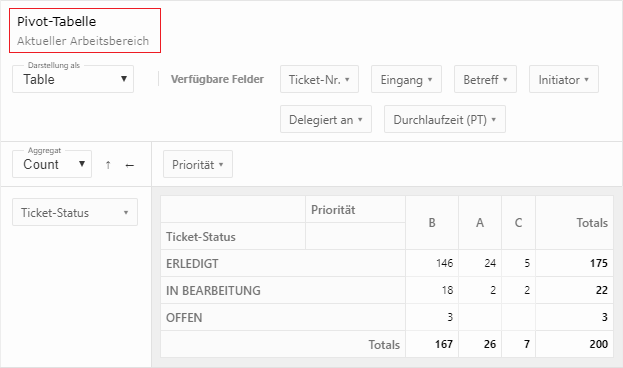 Sie können per Klick auf eine Zelle auch einfach auf die zugrundeliegenden Datensätze abspringen. Die letzte Zeile bzw. Spalte zeigt die entsprechende Spalten- oder Zeilensumme an, während die letzte Zelle unten rechts die Gesamtsumme darstellt.