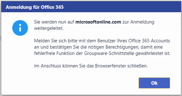Bei der Verwendung von MS Graph bzw. Office 365 muss die Authentifizierung (z.B. zum Versand von E-Mails) über Microsoft Online erfolgen.