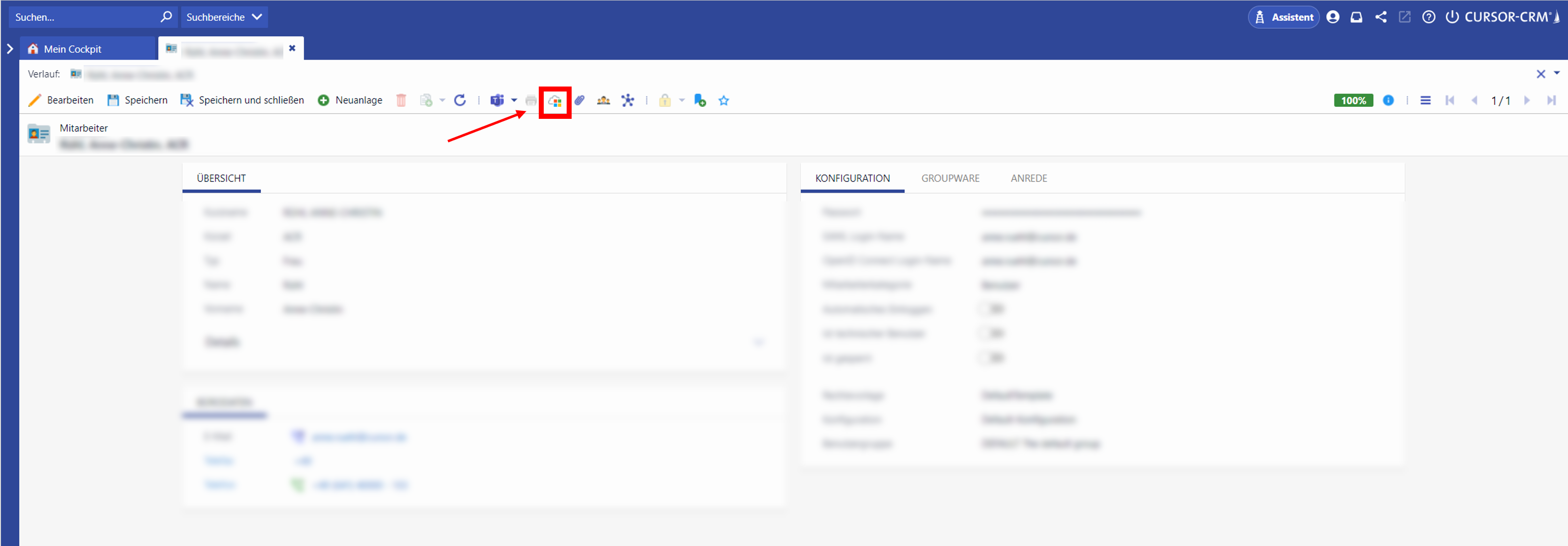Button zur Authentifizierung auf dem Mitarbeiter-Datensatz