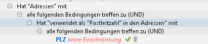 Beispiel: Alle Ansprechpartner, deren Adresse eine individuelle PLZ enthalten, fallen aus der Selektionsergebnismenge heraus.
