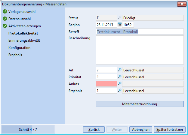 Assistent Schritt 4 - Protokollaktivität mit Daten