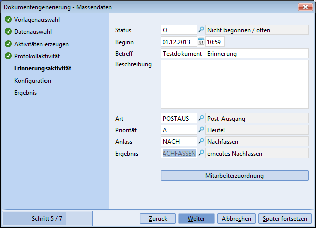 Assistent Schritt 5 - Erinnerungsaktivität mit Daten