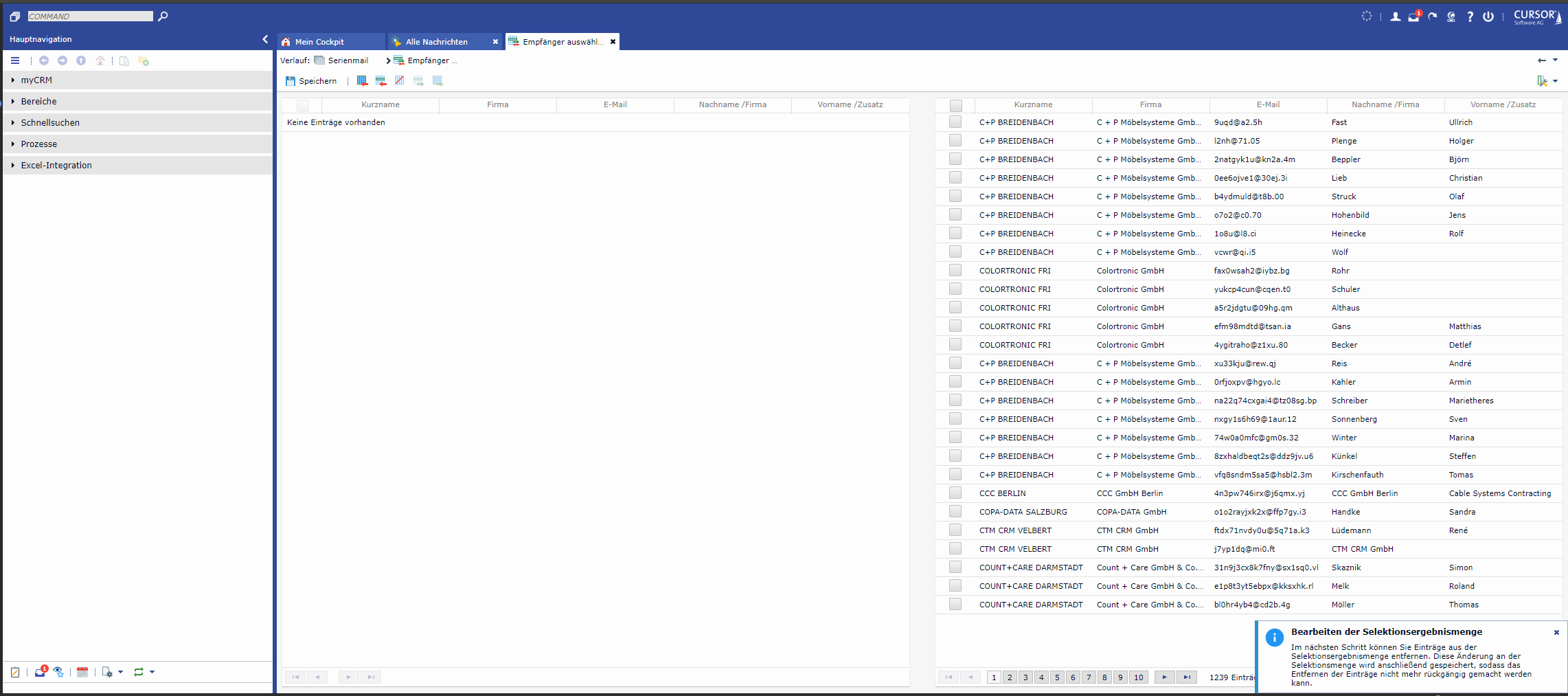 Nun können Sie die Empfänger-Liste in dem Zuordnungsbrowser einsehen und weitere Änderungen manuell vornehmen. Änderungen bestätigen Sie mit Speichern.