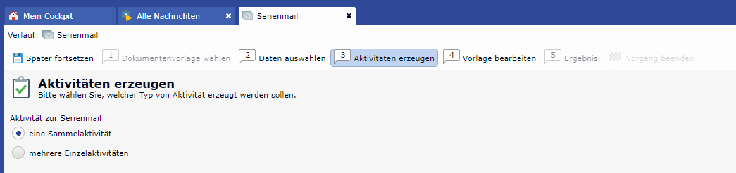 Die Auswahlmöglichkeit steht zur Verfügung, wenn die Serienmailgenerierung noch nicht durchgeführt worden ist.