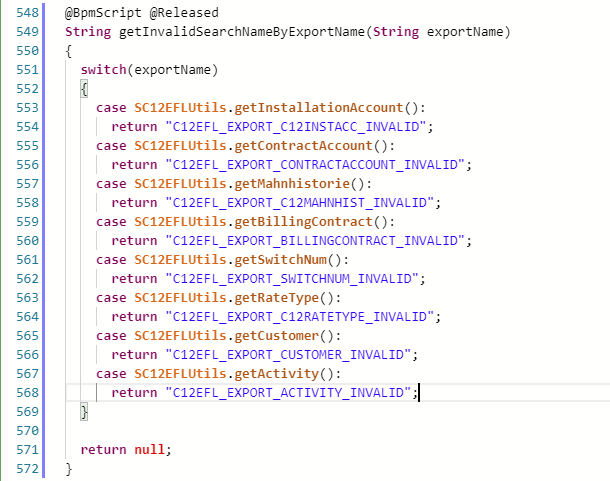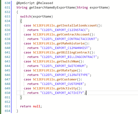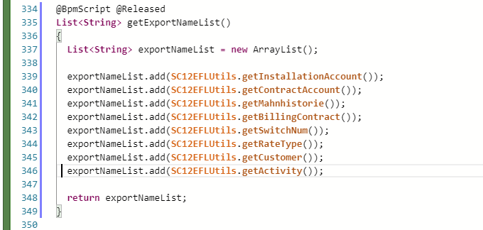 der Name der jeweiligen Export-Datei pro Entität kann durch Übersteuerung der jeweiligen Skriptbibliotheksmethode C12EFLUtils.get<Entitätsname> angepasst werden
