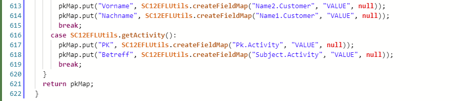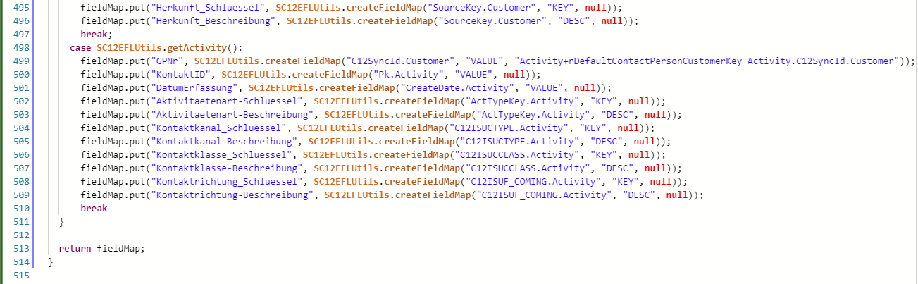 das Mapping der Felder ist in der Skriptbibliotheksmethode C12EFLUtils.getFieldMap hinterlegt