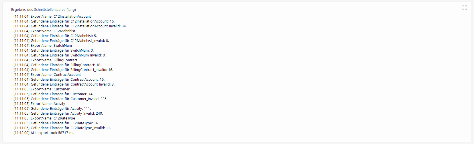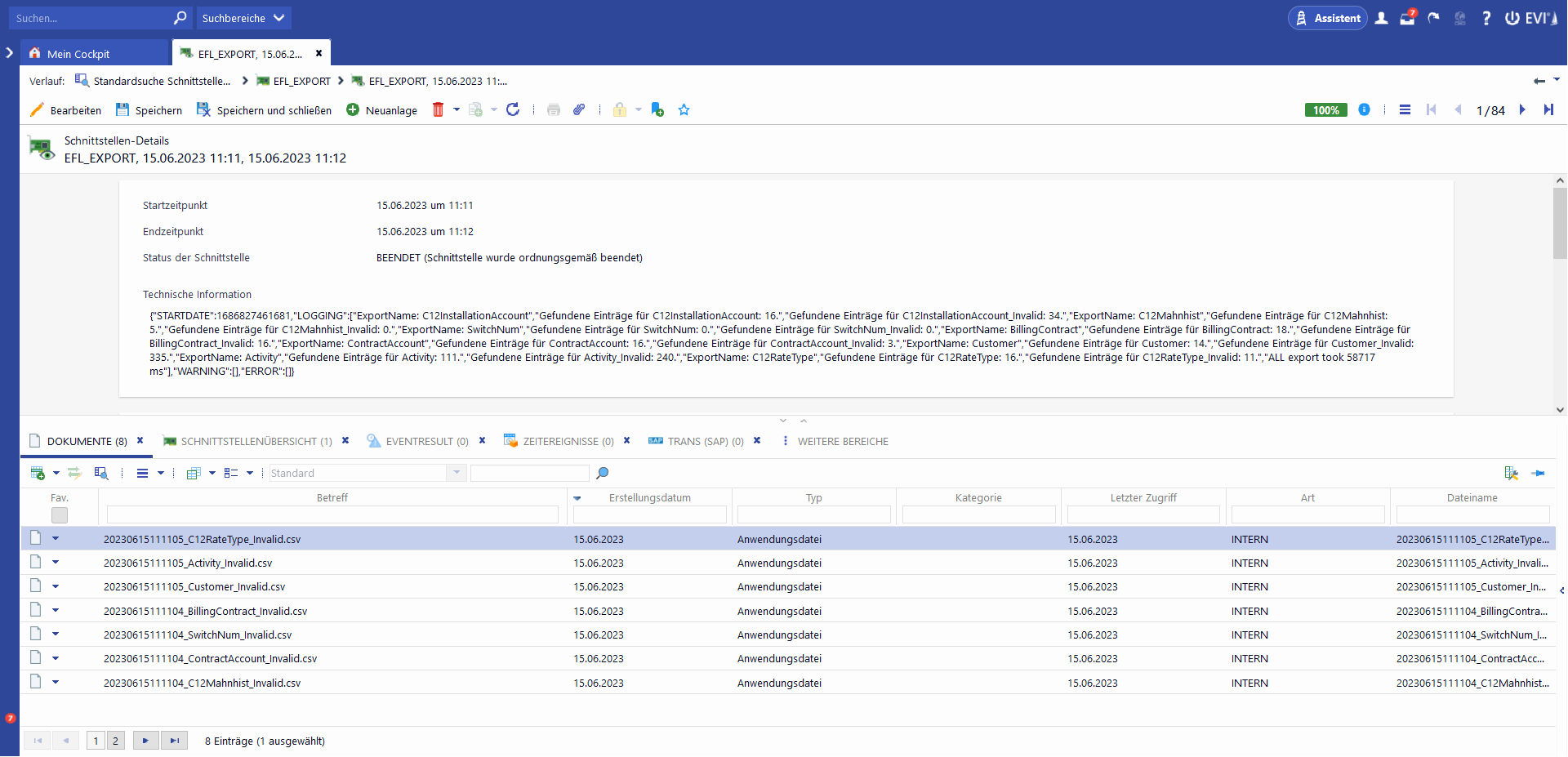 Dem Ergebnis eines Schnittstellenlaufs in den Schnittstellendetails lassen sich folgende Informationen entnehmen: