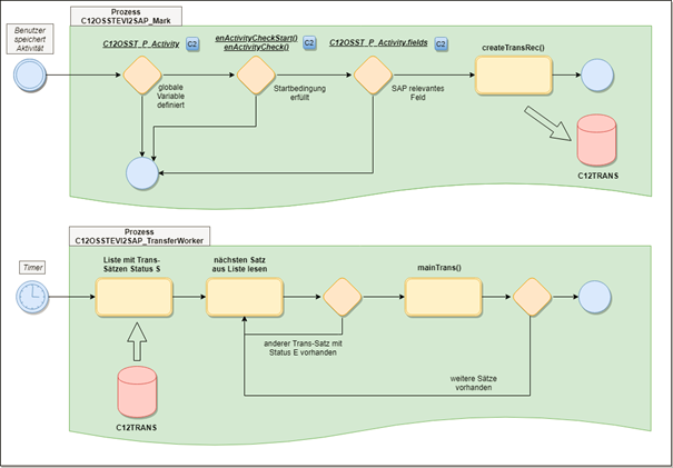 Der Prozess ist dafür verantwortlich, neben den SAP-Tabellen auch die Tabelle mit den Transaktionssätzen aufzuräumen, die auch von der EVI2SAP Schnittstelle verwendet wird. Der Timer C12OSST_EVI2SAP_TransferWorker für die Verarbeitung der SAP-Daten ist zu konfigurieren.
