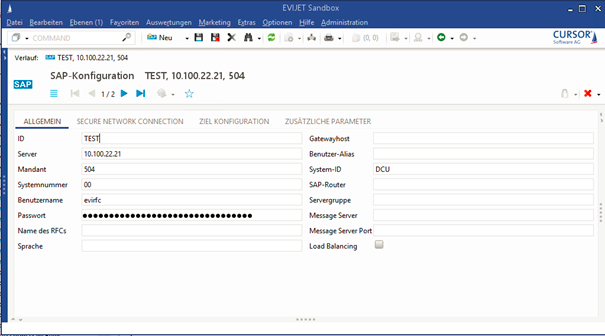 Die Werte für Server, Mandant, Systemnummer, System-ID, Benutzername und Passwort sind beim SAP-Systemadministrator zu erfragen. Über die ID werden die Einträge einem System zugeordnet.