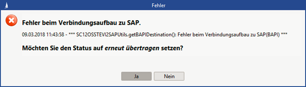 Um den Administrator zu entlasten, wird das Ergebnis der Übertragung bei einer synchronen Übertragung dem Benutzer angezeigt. Er kann dann selbst entscheiden, ob er den Fehler bewerten kann und den Status R-Restart auf Grund einer Ja-Nein-Abfrage setzen.