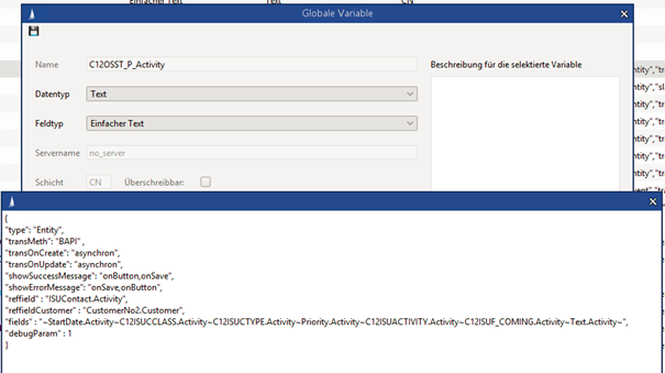 Um die Übertragung für eine Entität freizuschalten, ist die entsprechende globale Variable anzupassen. Zu jeder Entität existiert eine Variable mit dem Namen C12OSST_P_<Entität>
