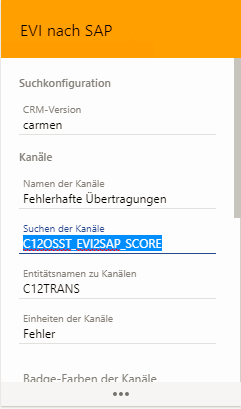Bei der Übertragung von Daten nach SAP werden Sätze in der WOI-TRANS-Tabelle erzeugt. Aufgabe des Administrators ist es, diese Sätze zu überwachen und Fehler zu erkennen. Dazu sind in regelmäßigen Abständen die Sätze aus der WOI-TRANS-Tabelle mit dem Status Fehler zu überprüfen. Als Hilfe dazu wird die Suche C12TRANS_EVI2SAP_SCORE angeboten, mit der sich eine Score-Kachel auf dem Desktop anlegen lässt.