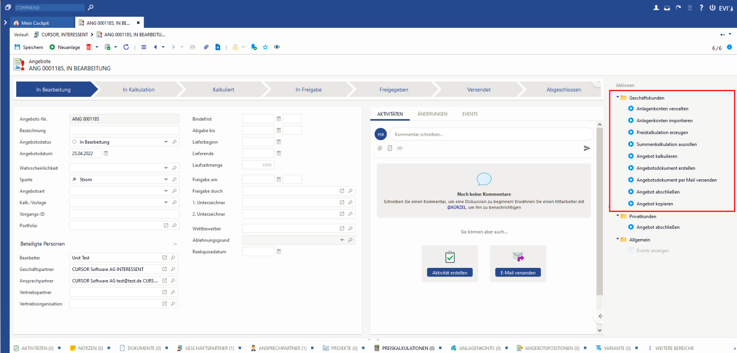 Im Unterbereich des Angebotes wurden Datensätze für die importierten Anlagenkonten erstellt und ebenfalls mit dem Angebot und auch mit dem Geschäftspartner verknüpft.