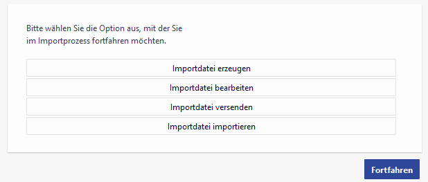 Im ersten Prozessschritt werden dem Anwender folgende Optionen zum Umgang mit der Importdatei angezeigt.