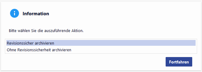 Nach Auswahl der Archivierungsmethode folgt eine Sicherheitsabfrage für den Anwender.