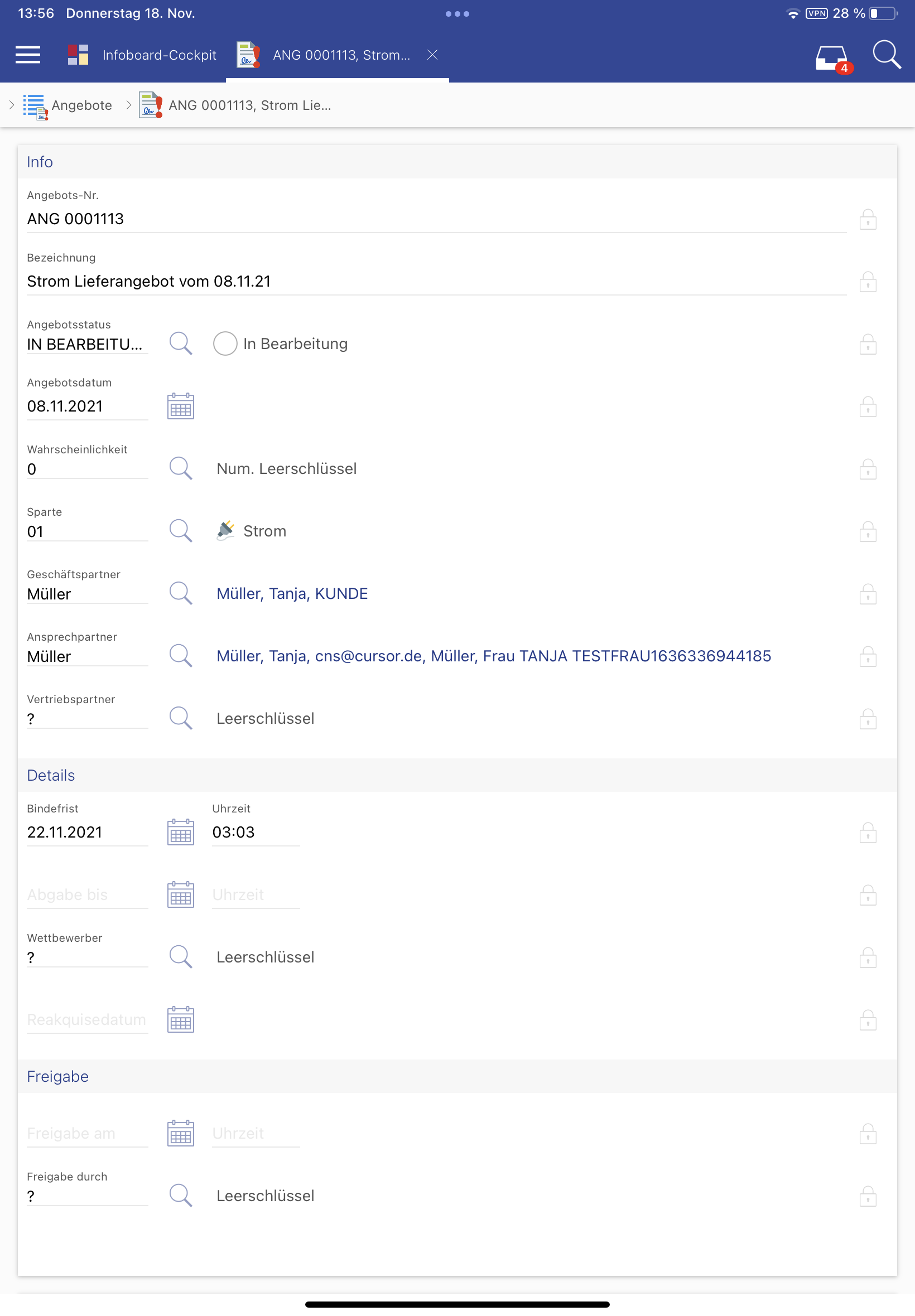 Für die CURSOR-App wurden die folgenden energiemarktspezifischen Bereiche freigeschaltet und mit App-Masken ausgestattet.