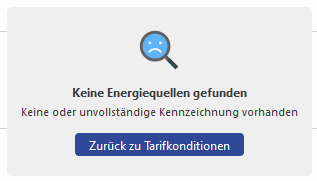 Die Kachel ist auf den Standard-Boards auf den Entitäten "Stromkennzeichnung" und "Gaskennzeichnung" in Verwendung. Ist für den Tarif bzw. auf der aktuellen zum Tarif gehörenden Tarifzeitscheibe keine oder eine unvollständige Strom- bzw. Gaskennzeichnung hinterlegt, so wird dies entsprechend visualisiert.