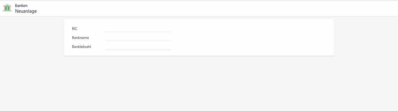 Bankname | BankName | Textfeld (100) | Dieses Eingabefeld ermöglicht die Erfassung des Banknamens. Bestandteil können Zahlen und Buchstaben sein. |