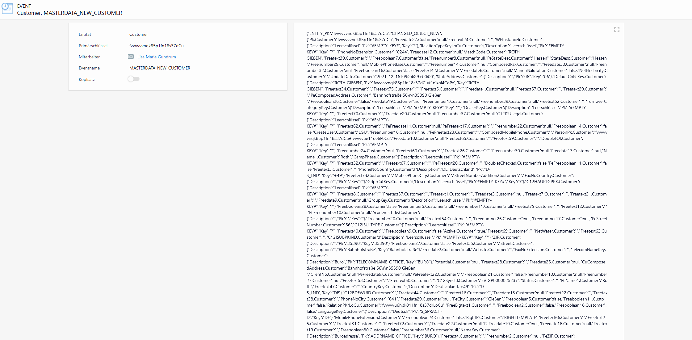 Kopfsatz | ISHEAD | Boolean | Das Flag wird zur Prüfung verwendet, ob ein Event erneut übertragen werden kann. Nur in diesem Fall wird der Button "Event erneut übertragen" aktiviert. |