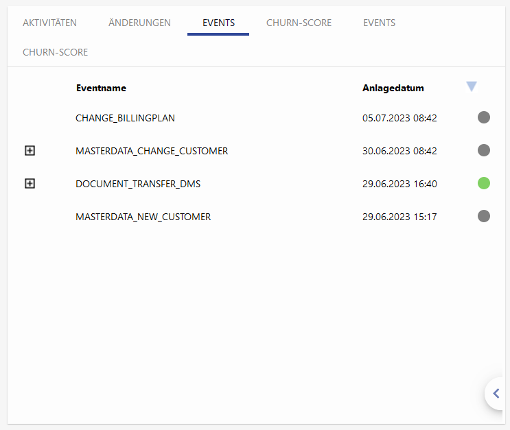 Sobald am ausgehenden Datensatz, bspw. dem Angebot ein Event vorliegt, bietet die Kachel "Event-Monitor" einen Überblick über diese Events. Weitere Informationen zu dieser Kachel finden Sie hier.