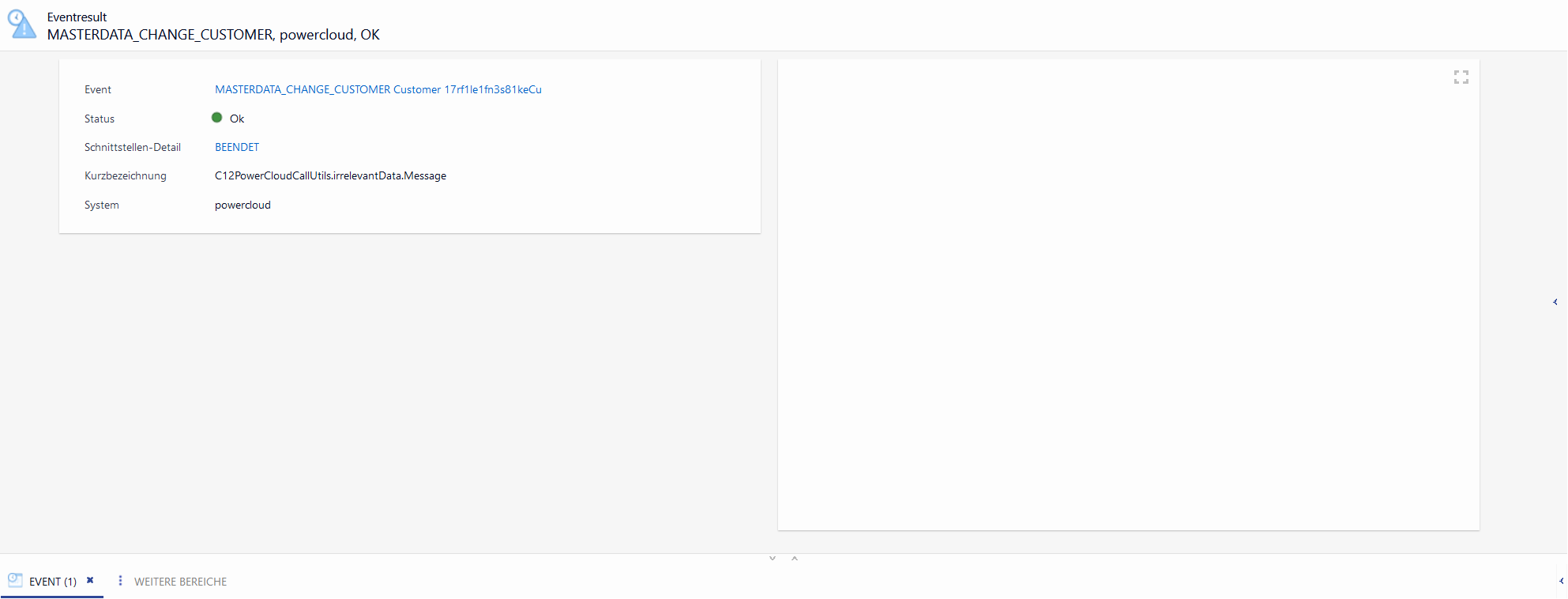 → Im Falle eines Fehlers muss dieser behoben werden und der Bearbeitungsprozess erneut ausgelöst werden. In den Infos des EventResult-Datensatzes befindet sich ein Log-Bereich, welcher den Fehler genauer beschreibt. → Wurde der Fehler behoben, kann der Anwender den Prozess erneut auslöse. Dazu ist in dem entsprechenden Event der Button Allgemein / Event neu übertragen in der Aktionsbox auszulösen. → Wird der Prozess erneut gestartet, wird ein neues Event erzeugt, welches über den oben beschriebenen Prozess abgearbeitet wird. Das zuvor erzeugte EventResult wird im Event-Result-Status auf NewEvent geändert Das vorherige Event wird mit dem neuen Event verknüpft (Vorgänger). Die Checkbox Kopfsatz kennzeichnet das jüngste Event. |