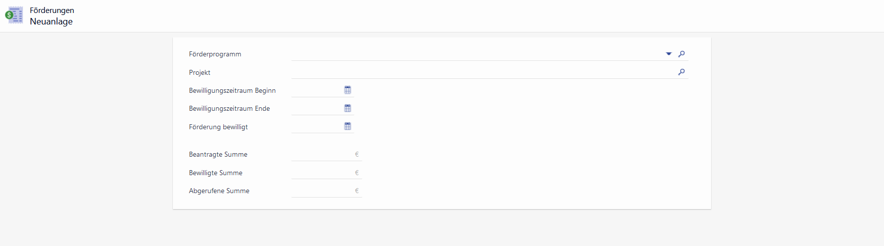 Die Förderungen werden im Prozess "Förderungen verwalten" ausgehend von einem Projekt angelegt und bearbeitet.