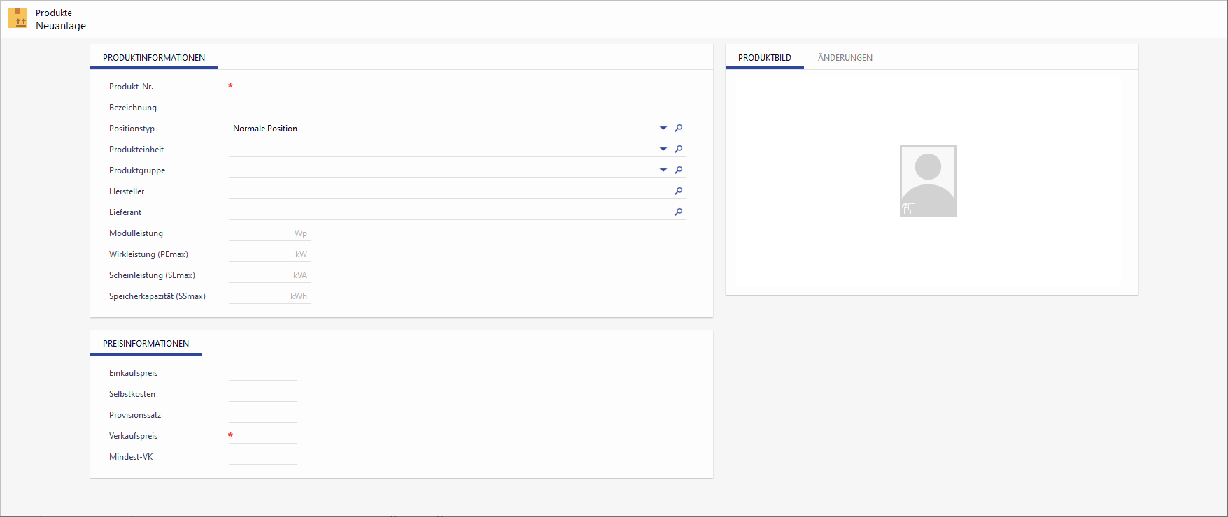 Ermöglicht die Hinterlegung von Produkten und zu Produkten gehörenden Detailinformationen. Die Produkte werden beispielsweise bei der Hinterlegung von Konditionen zu Strom- und Gastarifen verwendet. Weiterhin kommen sie auch im Rahmen des EDL-Moduls im Bereich der Angebotserstellung, sowie der Erfassung von Anlagendetails zum Einsatz.