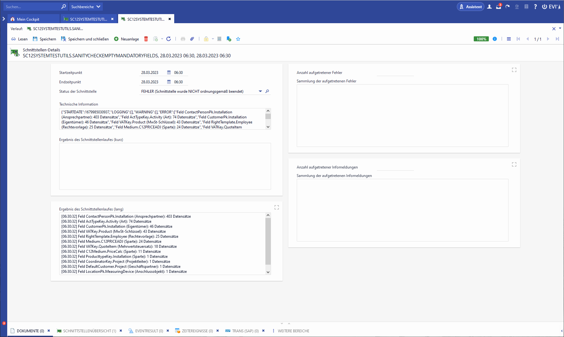 Ergebnis des Schnittstellenlaufes (kurz) | ResultSummary | Memofeld | Enthält Details zum Schnittstellenlauf als Kurzfassung. |