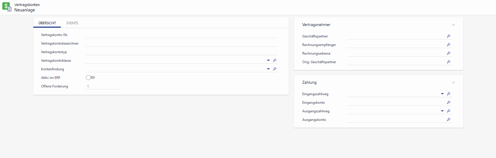 Vertragskonten werden ausschließlich über die ERP Schnittstelle in EVI angelegt und sind für den Anwender nicht editierbar.