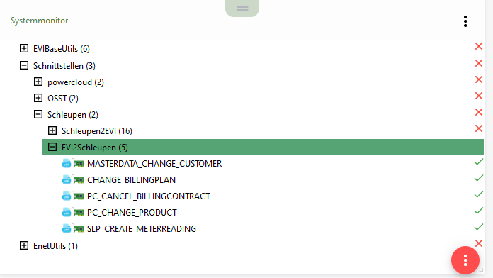 Jede Übertragung EVI2Schleupen wird in Schnittstellenübersicht zum monitoring überwacht. Die Ergebnisse werden auch im Systemmonitoring aufgeführt