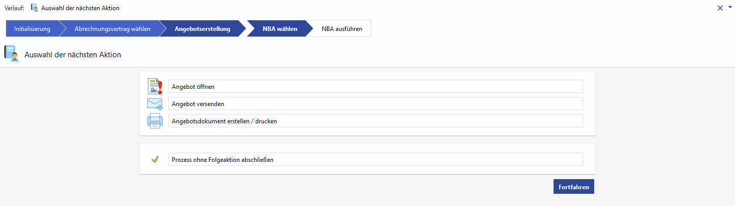 Wählen Sie diesen Eintrag, wenn Sie das Angebotsdokument erstellen möchtenProzess ohne Folgeaktion abschließen