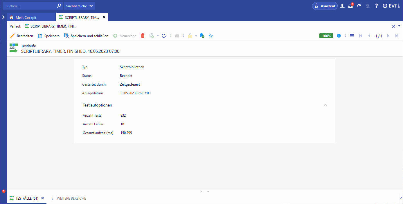 Mit Hilfe der Testläufe-Kachel lassen sich Testläufe auswerten. Zu beachten ist, dass nur automatisch ausgeführte Testfälle in der Kachel ausgewertet werden. Die Kachel wird auf dem Standard-Infoboard Systemmonitor verwendet.