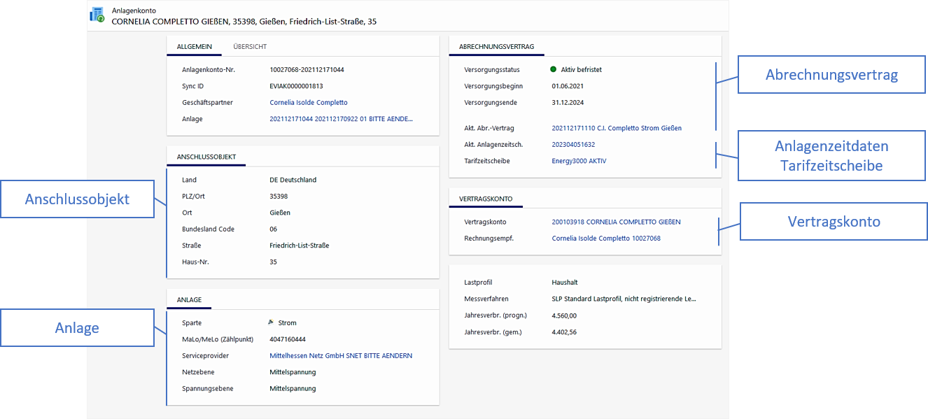 dieser Abrechnungsvertrag besitzt eine Zuordnung zum Vertragskonto (Herleitung des Geschäftspartners)