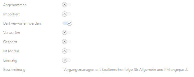 Inaktive Toggle-Schalter waren als solche schwer erkennbar, da ihre Hintergrundfarbe sich zu wenig von der Hintergrundfarbe der Anwendung abhebte. Um die inaktiven Toggle-Schalter besser darstellen zu können, haben die Schalter eine leichte Umrandung erhalten.