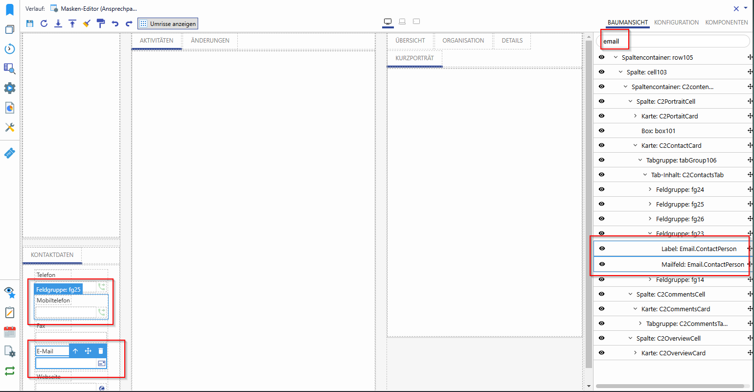 Hierfür wurde das Standardverhalten angepasst, sodass nun immer eine Feldgruppe erzeugt wird. Möchte man ein Label in eine bestehende Feldgruppe hinzufügen, so muss die Komponente bei gedrückter STRG-Taste auf die Maske gezogen werden.