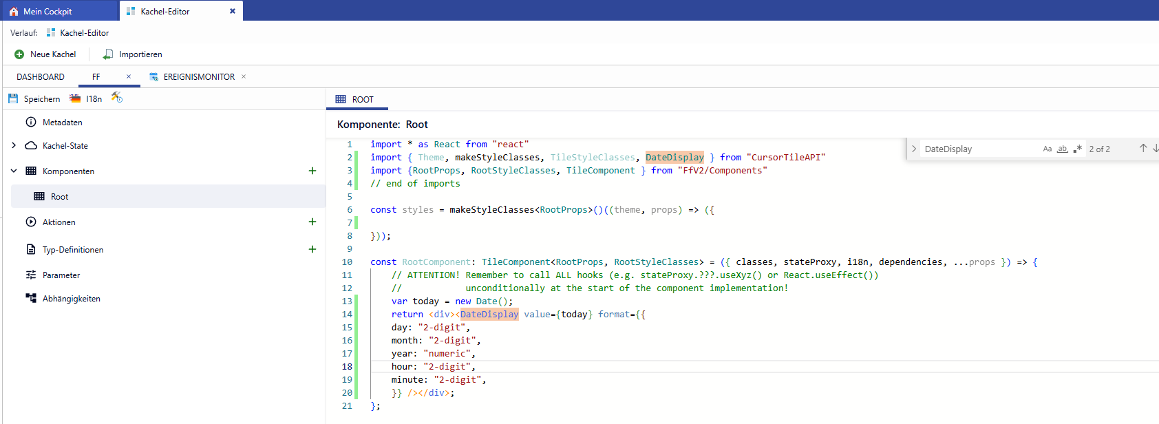 In V2-Kacheln können die Datumseingaben im Kachel-Editor formatiert werden.