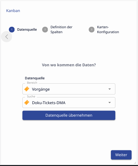 Kanban-Kachel: Integration des Datenquelle-Editors