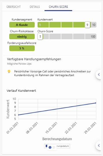 Kundenwert-Kachel wurde um Darstellung des Forderungsausfallscores ergänzt (Darstellung analog zum Churnscore)