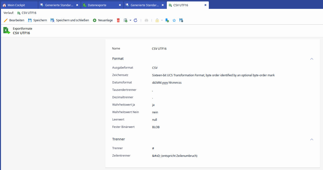 Um die Daten in einem gewünschten Format bereitzustellen, muss die Struktur definiert sein. Diese Struktur kann in dem Administrationsbereich konfiguriert und hinterlegt werden. Es können wahlweise mehrere Exportformate hinterlegt sein.