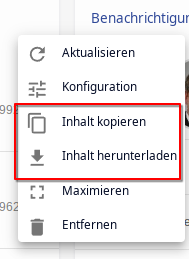 Um Kachelinhalte (bspw. Grafiken) herunterzuladen bzw. in die Zwischenablage einzufügen, wurden Aktionen in dem 3-Punkte-Menü platziert.