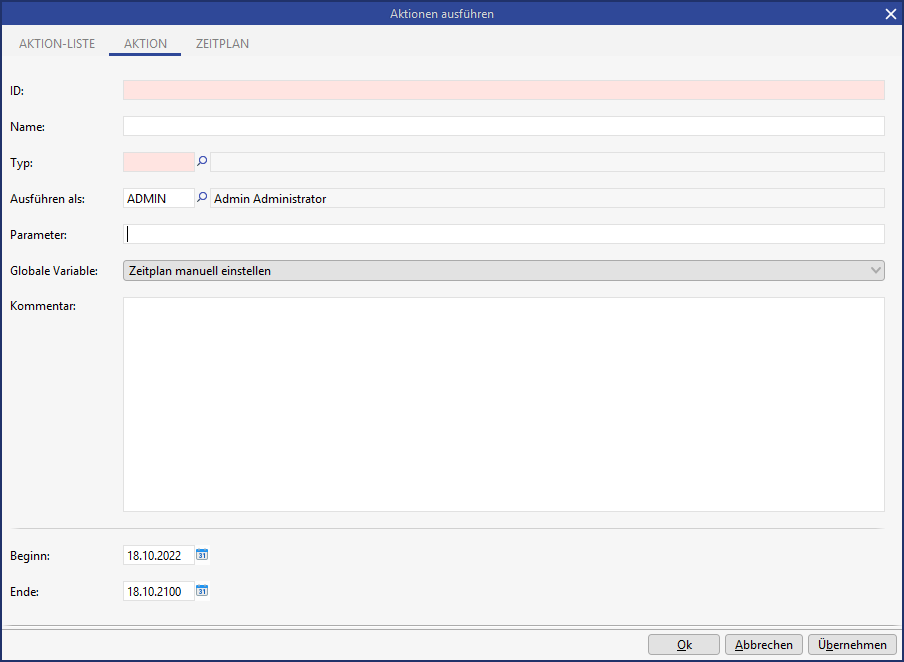 das Feld ist bei Neuanlage der Aktion schreibbar