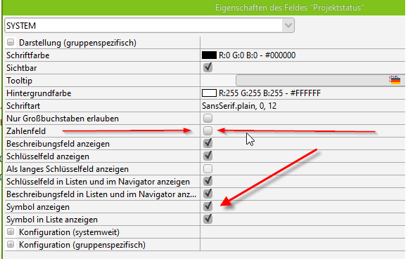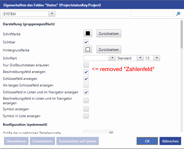 Feldeigenschaft "Zahlenfeld" für Nachschlagefelder wurde in beiden Clients ausgeblendet, weil die Änderungen unzulässig sind.